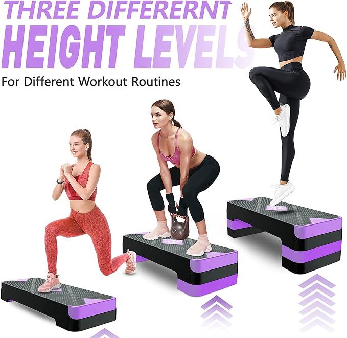 - UPGRADED 3 EASY ADJUSTABLE HIGHT: GYMMAGE Aerobic Stepper comes with 26.5" x 10.5" wide platform and 4 risers (2 pairs of risers). Intensify workout difficulty by adjusting platform height from 4” to 6” to 8” using risers to challenge yourself. Perfect for any levels of user of all ages