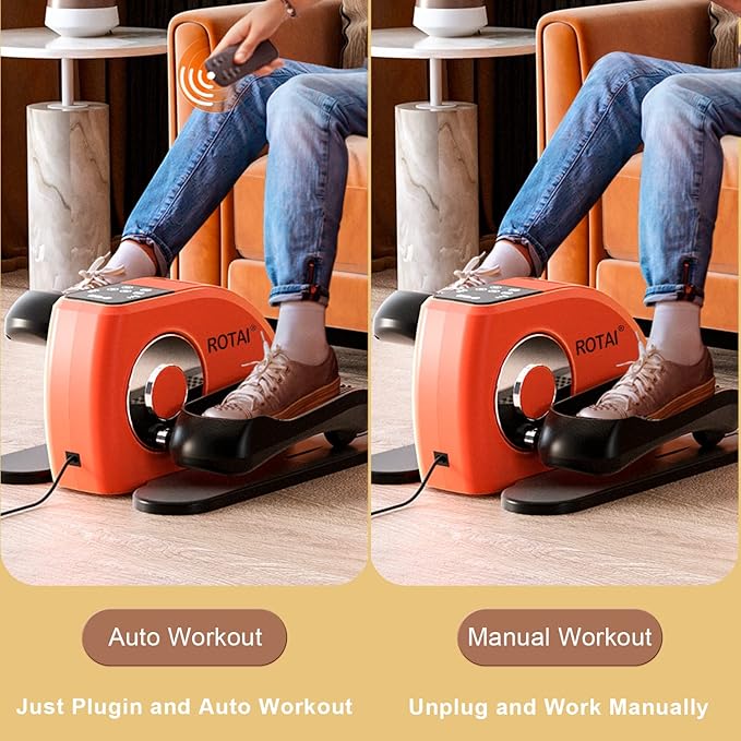 - ✅[Let Machine do Workout for U] ROTAI Auto Elliptical is designed to help people do more exercise and promote circulation. Simply pedal and power up muscles for people working around the desk or seniors with Arthritis /Parkinsonism. It works automatically and quietly. So you can do working reading or watching tv and also get workout.