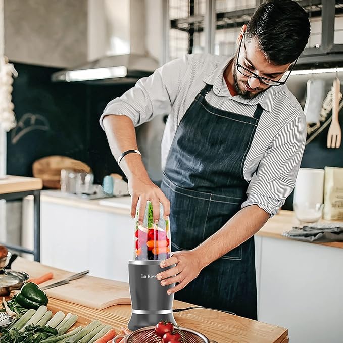 La Reveuse Personal Size Blender 250 Watts Power for Shakes Smoothies Seasonings Sauces with 1 Piece 15 oz Cup,1 Piece 10 oz Mug,BPA-Free (Black)
