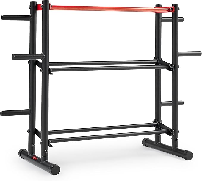 - STURDY & COMPACT: A space efficient 3 tier storage weight rack is the perfect addition to any strength training home gym. With a max weight of up to 835 LB, this weight storage rack can help you stay organized while you focus on your lifts.