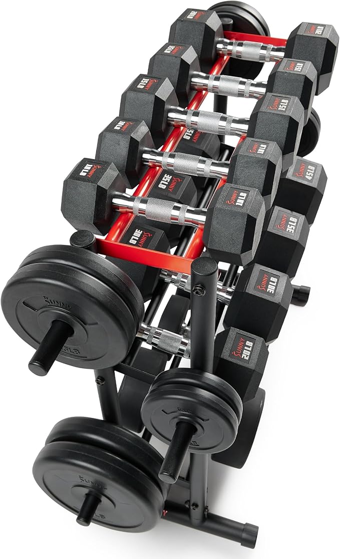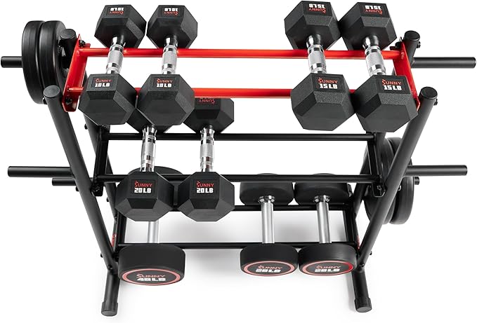 Sunny Health & Fitness Multi-Weight Storage Rack Stand for Dumbbells, Kettlebells, Olympic Weight Plates, Barbell, Medicine Ball