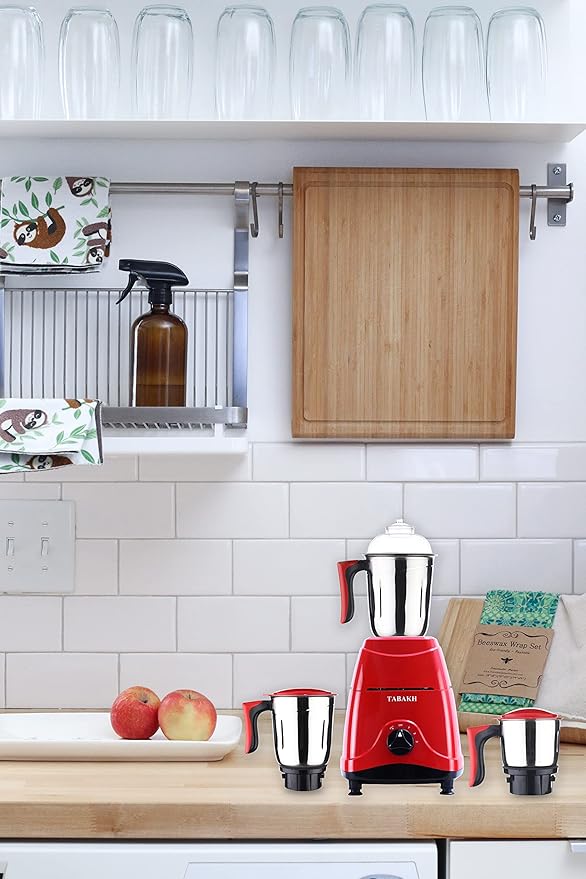 TABAKH Indian Mixer Grinder | 3 Stainless Steel Jars | 650 Watts | 110-Volts | Red