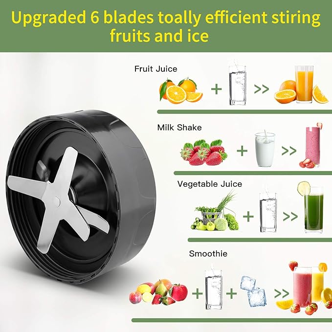 - BPA-FREE - Included: (1) 1000W motor base, (1) 6-leave durable blade,(1) 24 oz BPA-free blending cup ,(1) solid lid,(1) drinking lid,(1) User manual