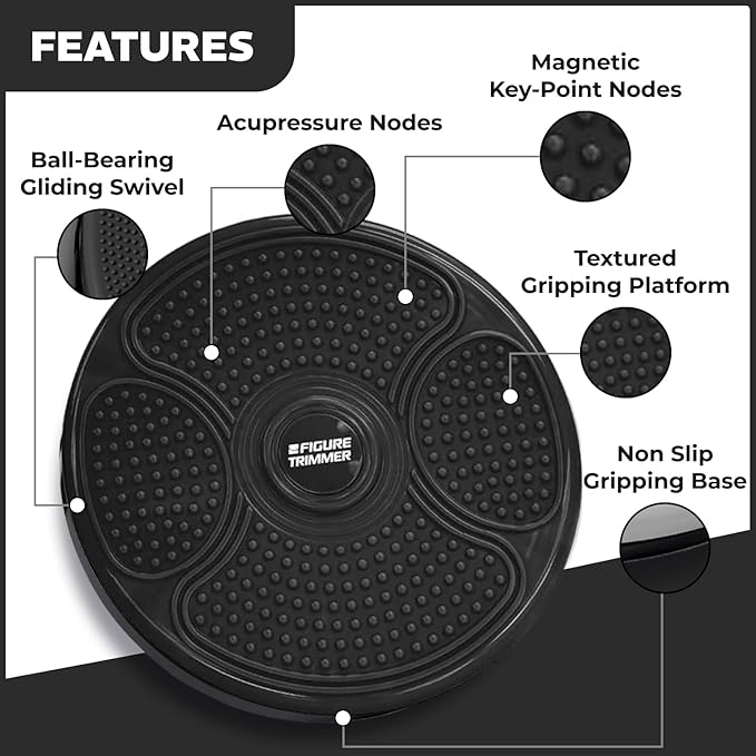 - ๐งฒ ๐๐ฐ๐๐ฝ๐ฟ๐ฒ๐๐๐๐ฟ๐ฒ ๐ง๐ต๐ฒ๐ฟ๐ฎ๐ฝ๐: Experience the dual benefits of acupressure therapy with our core ab twister board. Abs twister provides acupressure therapy, known to have natural healing effects and promotes blood circulation. The massage knobs work to target reflexology pressure key points in the feet, promoting overall wellness while you work out.