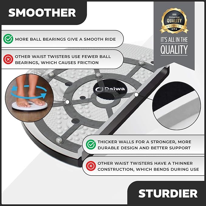 - ๐ช ๐๐ผ๐บ๐ฝ๐ฎ๐ฐ๐ & ๐๐๐ฟ๐ฎ๐ฏ๐น๐ฒ: Our Ab Twister Machine Waist exercise equipment stands out with its compact design and durable build. Unlike competitors with thinner plastic boards, ours features thicker walls for enhanced durability. While others offer fewer ball bearings leading to friction, ours boasts more ball-bearings in a gliding swivel that ensures smooth, friction-free rotation, making every workout session effortless and enjoyable.