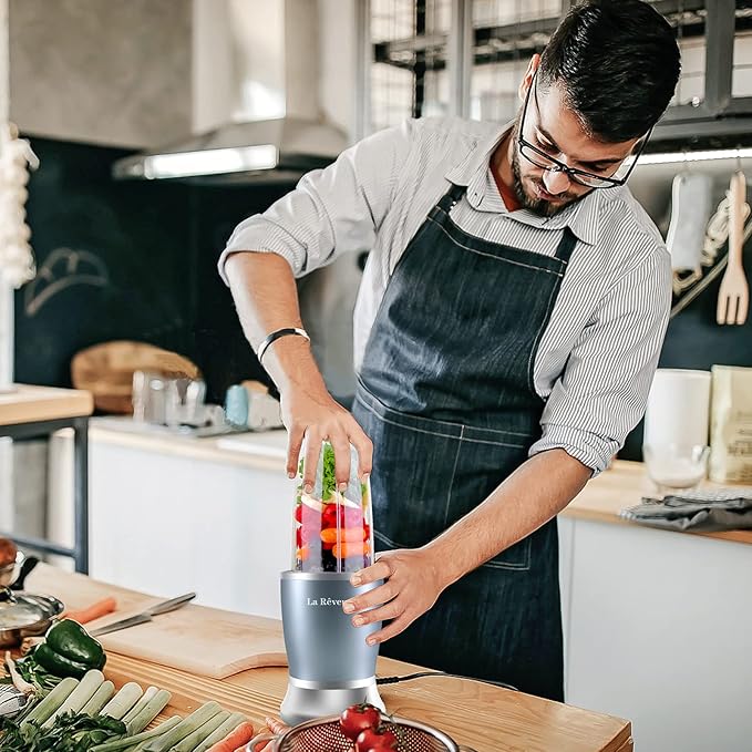 La Reveuse Personal Size Blender 250 Watts Power for Shakes Smoothies Seasonings Sauces with 1 Piece 15 oz Cup,1 Piece 10 oz Mug,BPA-free (Pearl Blue)