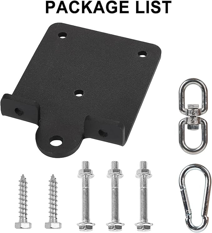 - Easy to install--Package Included: 1x bag hanger,1x Carabiner,1x Rotating link buckle,2 x lag bolt,3 x hex bolts,3 x hex nuts.Using screws to install,convenient and fast,the installation can be completed in five minutes.