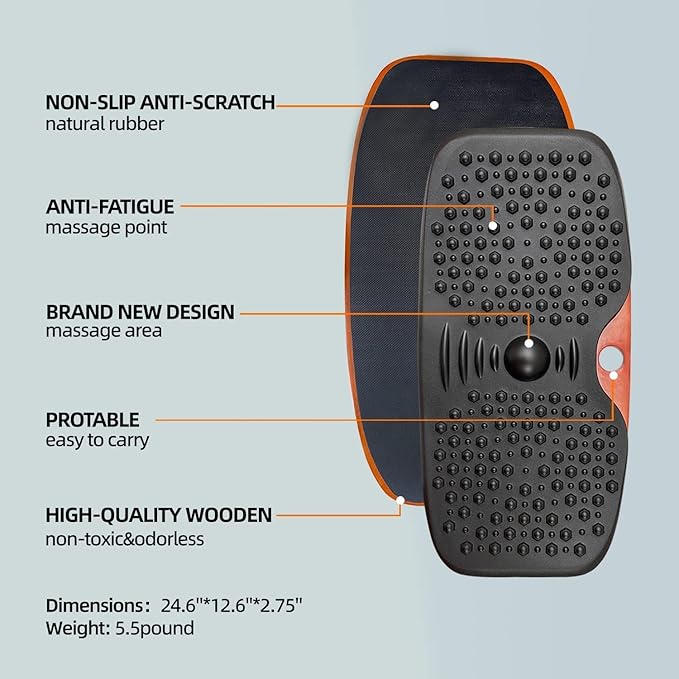 - ANTI FATIGUE MASSAGE POINTS--Massage area for blood circulation and muscle engagement. Easy to stand on and safe for anyone to use these office balance boards with gentle balancing movements to avoid workday stiffness.