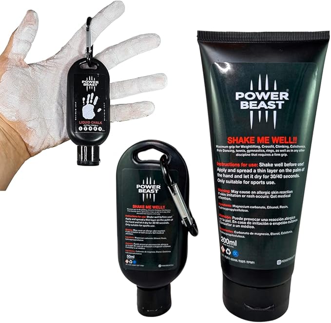 - ✅ EXTREME GRIP: Power Beast Liquid Chalk offers extreme gripping power and great safety without slipping during your workouts. Specially designed to reduce hand perspiration to the maximum, offering the grip that a professional athlete needs. This pack includes a complimentary Power Beast chalk ball, which offers you a total grip in your workouts.