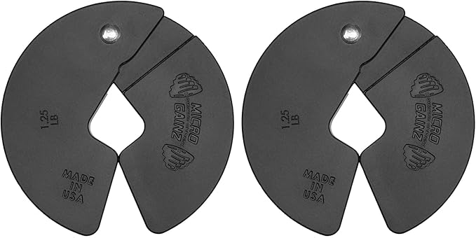 - Space-Saving Precision: Micro Gainz 2-Piece Dumbbell Micro Plate Weight Set – Two 1.25LB micro plates, expertly crafted for a secure fit on most dumbbell handles; Ideal for fractional weight, change plates, and enhancing barbell or weight plate sets; Elevate your workout with precision