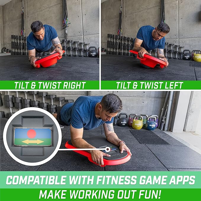 GoSports Fitness Plank Board with Smart Phone Holder - Blue or Red - Core Hub for Full Body Workouts
