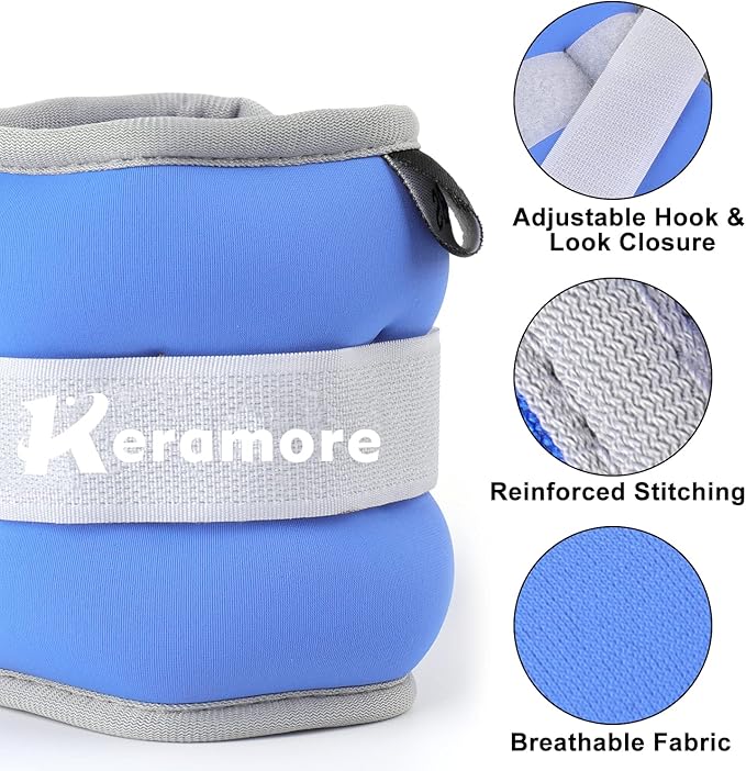 Ankle Weights, 1/2/3/4/5/6/8/10/12 LBS (1 Pair) Wrist Arm & Leg Weighted for Women Men Kids with Elongated Strap for Exercise, Fitness, Jogging, Aerobics, Yoga, Dancing and Physical Therapy