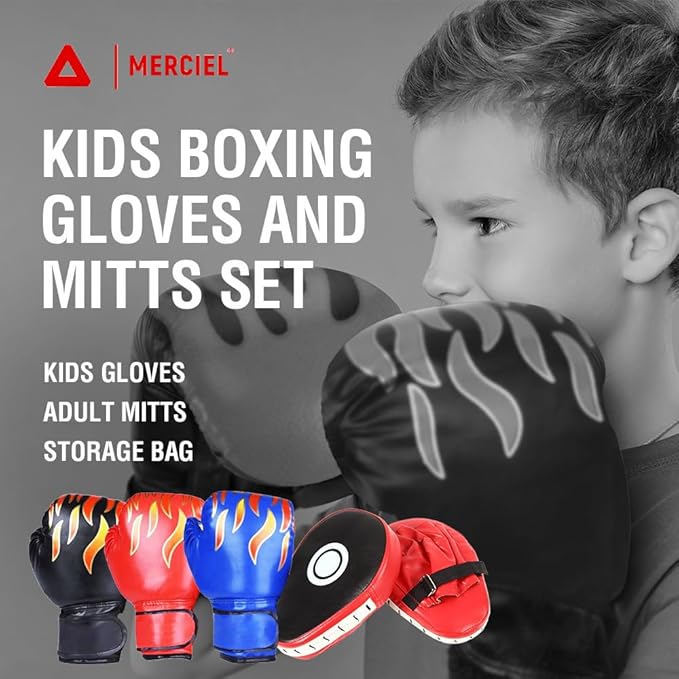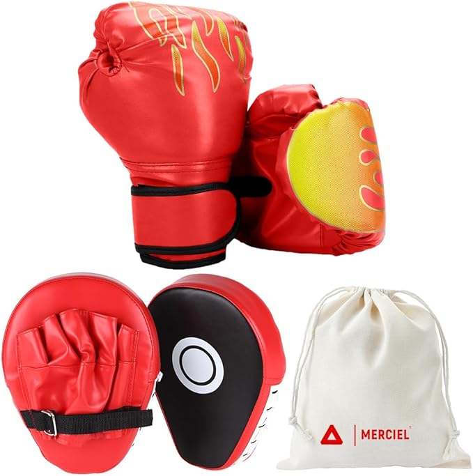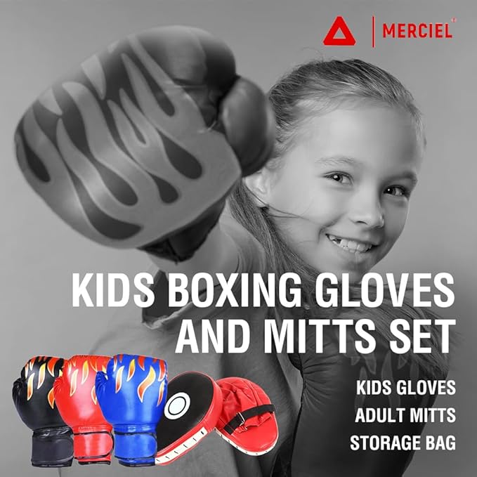 - 【PERFECT OPTION】- Explore our MERCIEL brand boxing gloves for kids and adult punching mitts set, complete with a practical storage bag for easy mobility. Color options are available in blue, black, and red.
