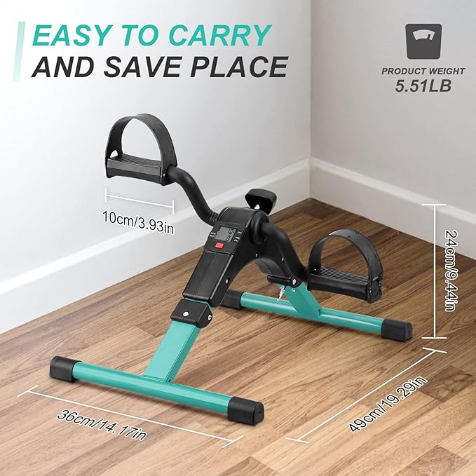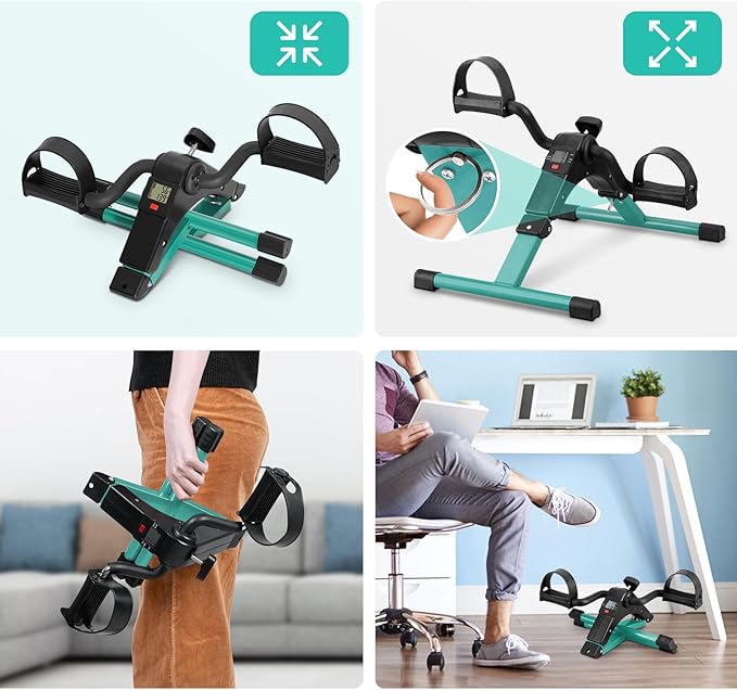 Uten Folding Pedal Exerciser, Under Desk Bike Pedal Exerciser, Mini Under Desk Exercise Bike Foot Hand Cycle Portable, Arm and Leg Exercise Peddler Machine with LCD Monitor