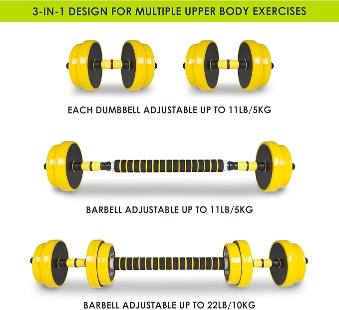 - 2-IN-1 DUMBBELL & BARBELL – Transition from dumbbells to a barbell in seconds! Easily attach the connecting rod to transform the hand weights into a barbell for ultimate versatility. Get your workout done with one piece of equipment.