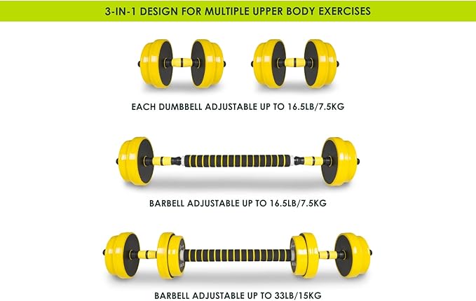 - 2-IN-1 DUMBBELL & BARBELL – Transition from dumbbells to a barbell in seconds! Easily attach the connecting rod to transform the hand weights into a barbell for ultimate versatility. Get your workout done with one piece of equipment.
