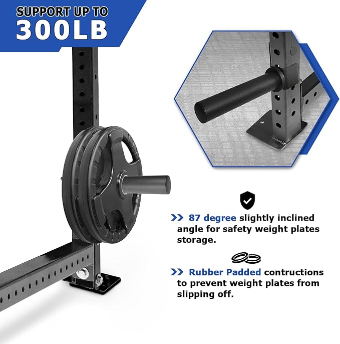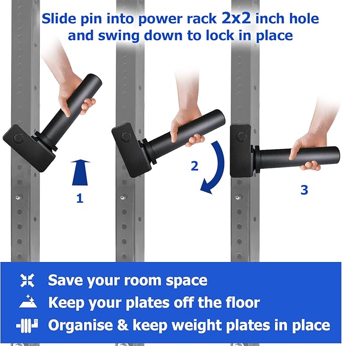 - EASY TO INSTALL AND USE: A2ZCare Weight Plate Holder can be easy to insert and lock-in design. Just slide pin into power rack's hole and swing down to lock in place. The design is especially ideal for loading and unloading the weight plates. Fit most of 2” x 2” square tubes rack and 1” hole, but not all.