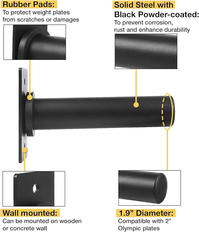 - SPACE-SAVING SOLUTION: A2ZCare wall mount weight plate holder are the appropriate alternative for bulky and space-consuming weight plate trees. Easily mount to any CONCRETE or WOOD wall. Comes with all mounting hardware for your comfort.