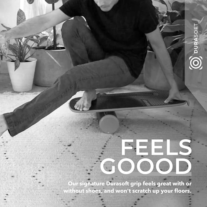 - DURASOFT TRACTION: Our exclusive traction surface is extremely comfortable to use with bare feet, or with shoes, and super durable at the same time. It won’t scratch you or your floors like other boards made with rough griptape.