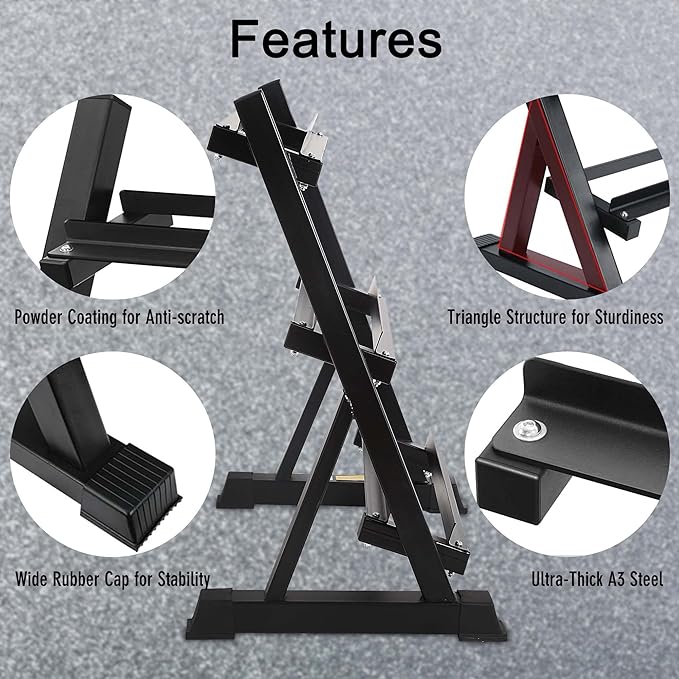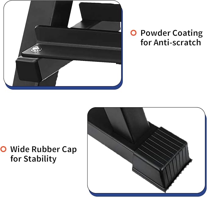 - 【Safe and Reliable Rubber Base】: 4 large-area rubber bases fully increase the contact area on the ground,ensure the stability of the product, and protect the floor from scratching. It also absorbs shock during re-stocking, preventing the dumbbell rack from sliding.