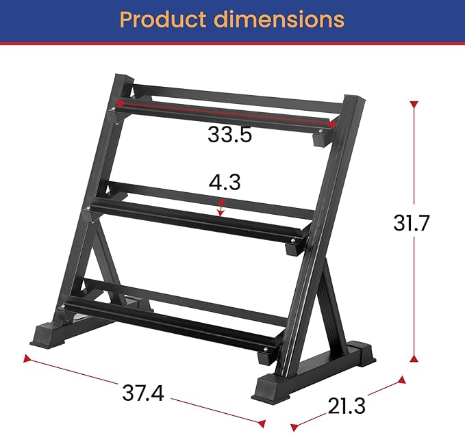 - 【Compact and Space-saving Design】: Weight rack adopts an ergonomic design structure, has a compact three-tier storage space and an inclined design, allowing you to place the dumbbell rack anywhere in the gym for easy loading and recycling of dumbbells .