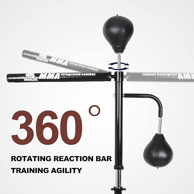 INNOLIFE Boxing Spinning Bar Punching Bags MMA Training, Home Gym Workout Equipment, Punching Bag with 2 Speed Ball for Adults and Youth