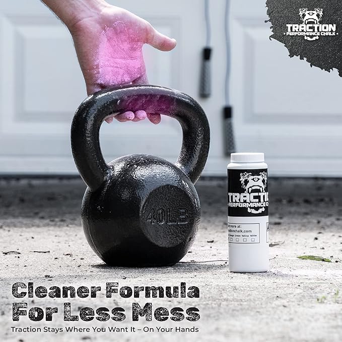 Traction Performance Colored Gym Chalk | Powder Chalk for Gymnastics, Rock Climbing, Weight Lifting & Workouts - Firm Grip Soft Chalk Lifting Powder in Vibrant Colors - Made in USA | 8 oz.
