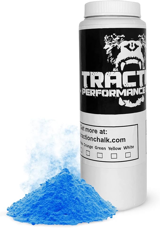 Traction Performance Colored Gym Chalk | Powder Chalk for Gymnastics, Rock Climbing, Weight Lifting & Workouts - Firm Grip Soft Chalk Lifting Powder in Vibrant Colors - Made in USA | 8 oz.