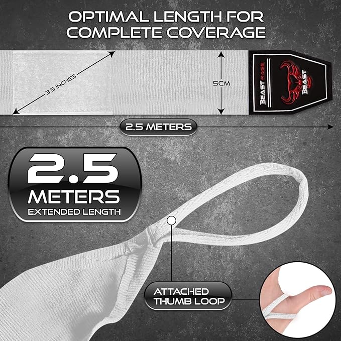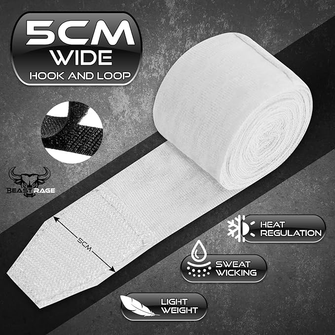 BEAST RAGE Boxing Hand Wraps 4.5 Meter Martial Arts Bandages Inner Gloves Wrist Support Straps Punching Under Hand Knuckles Heavy Elasticated Training Bag Mitts Muay Thai