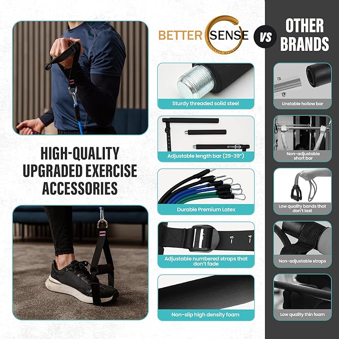 - UMATCHED QUALITY & SUPPORT FROM A TRUSTED NORTH AMERICAN BRAND: Enjoy this premium full body workout kit (kit pilates en casa). It's the idea portable home gym and it's available in stylish black, pink, or purple. Backed by dedicated customer service from BetterSense, a fitness brand committed to your satisfaction and results.