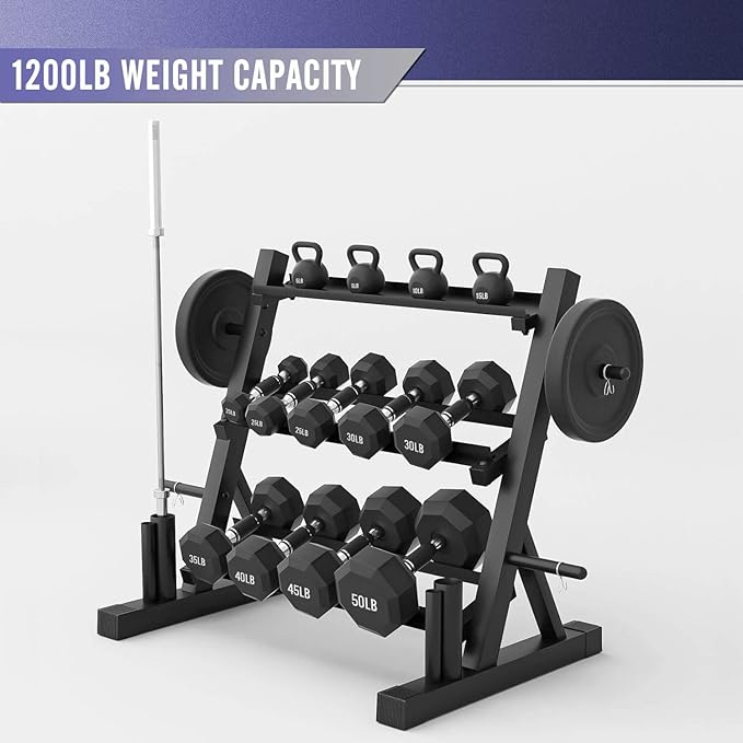 - 【Powerful storage function】----only need a multi-functional dumbbell rack, you can store a series of fitness equipment such as kettle bells, dumbbells, weight plates, curl bars, etc., so that your home gym becomes more professional.