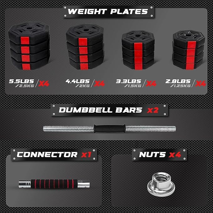 Yes4All Upgraded 44lbs/66lbs Pair Adjustable Weights Dumbbells Set, Free Weights Dumbbells Set with Connector, Cement Mixture