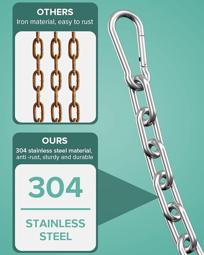 - 【High Quality Material】 Gym Cable Attachments Extension Chain is made of 304 stainless steel which has higher strength, super capability and high quality enhance anti-deformation and corrosion resistant performance, 23inch (60cm) in total length, 0.2 inch (5mm ) in thickness, strong and durable, no sharp edges, support 600LBS load capacity.