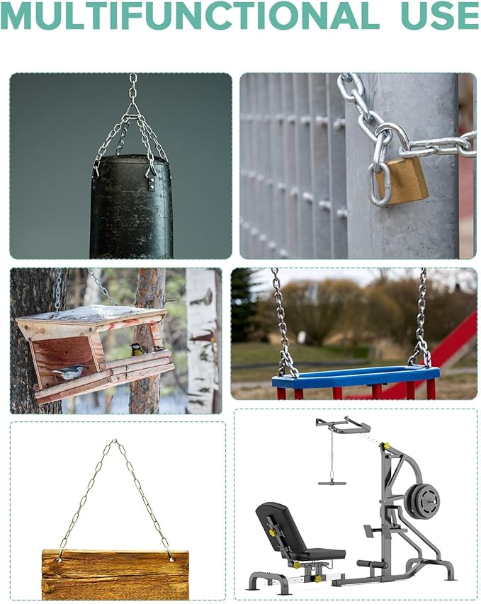 - 【Workout Chain】 This is an extension chain mainly for gym types of projects. You can connect this extension chain to your "fitness cable of exercise machine and any cable machine handles" with snap hooks.Fitness chain perfect for Pulley System, Home Gym and more.