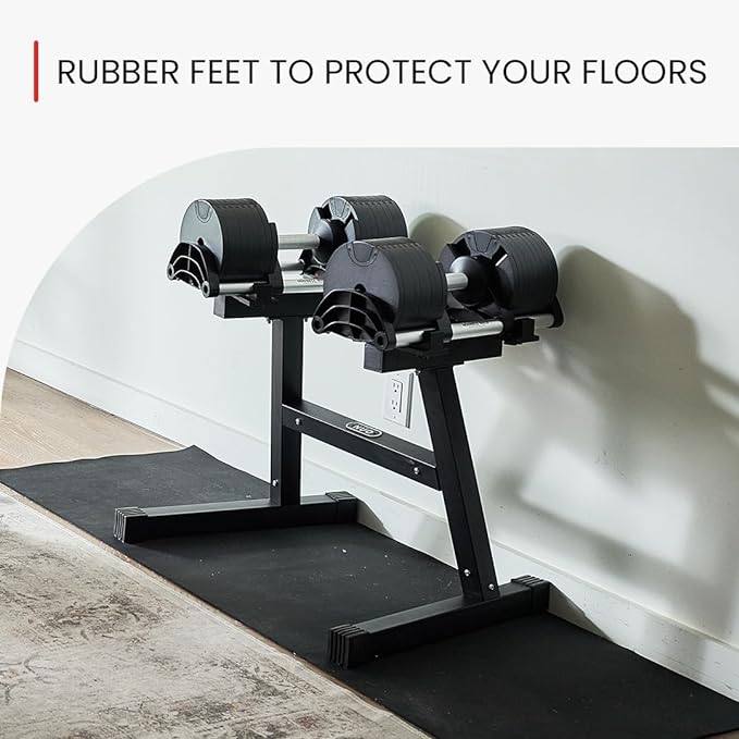 - Rubber Feet are Safe for Floors - Reduce scratches and marks. Just click, lock and lift. Replaces an entire free weight rack in one easy to use dumbbell stand. Perfect for Nuobell dumbbells.