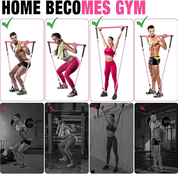Pilates Bar Kit with Resistance Bands,Pilates Bar with Stackable Bands Workout Equipment for Legs,Hip,Waist and Arm,Exercise Fitness Equipment for Women & Men Home Gym Yoga Pilates