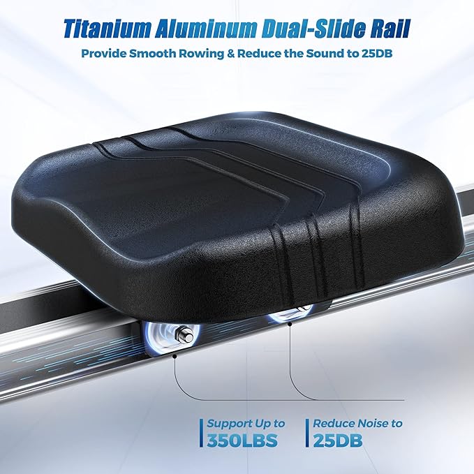 - Ergonomic & Steady Rowers: Aluminum slid rail ensures your rowing movement more smoothly, quietly and stability than Normal black iron ones. Molded padded elastic seat is designed to be very comfortable and functional