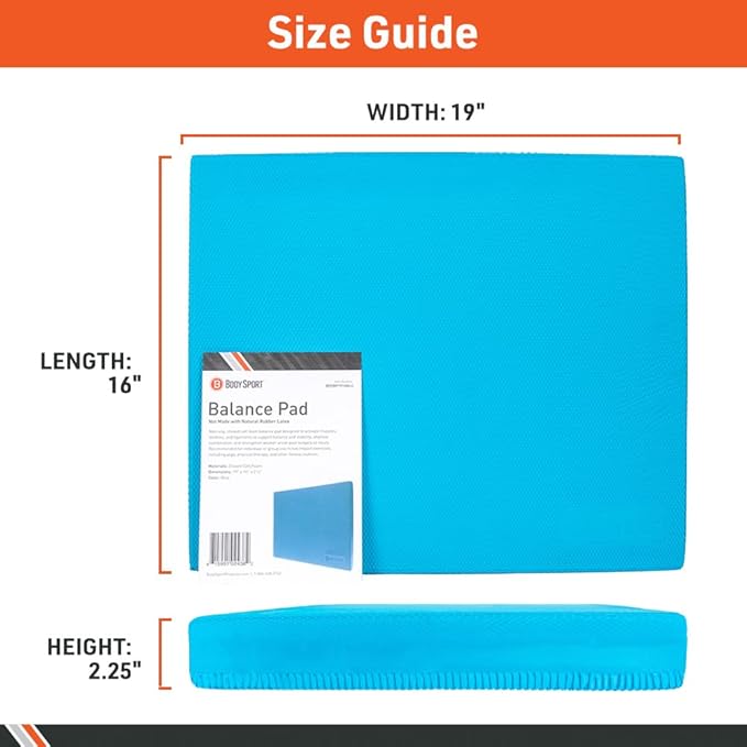 Body Sport Non-Slip Balance Pad – Improve Balance & Build Strength – Physical Therapy & Yoga Pad for Home & Gym – 19" x 16" x 2 1/4", Blue