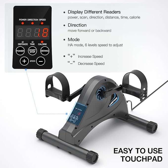 - 👍UPGRADED SMOOTH & QUIET PEDAL EXERCISER - LUBBYGIM electric pedal exerciser is used to strengthen arms and legs muscles, which is great for improving sedentary body tension, blood circulation, physical therapy and muscle relaxation. Extremly Smooth and quiet electric driven system allows you to do exercise while you are on phone, watching TV, working or playing video games