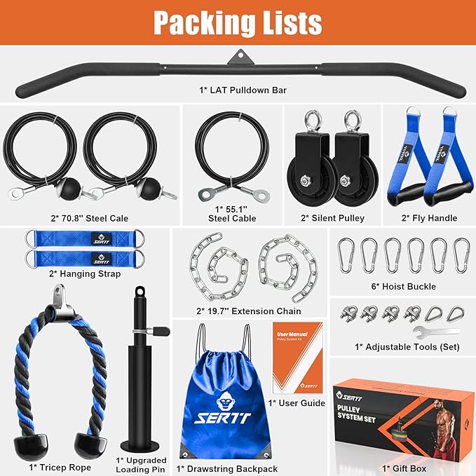 - 【Brand Support & Risk-Free Attempt】 SERTT is committed to simplify your home gym and provide the best quality cable workout machine & lifting accessories. All our products will be backed by our 12-Month Warranty and support 7*24H Technology Service. If you have any questions or suggestions about our lat and lift pulley system, please feel free contact us.
