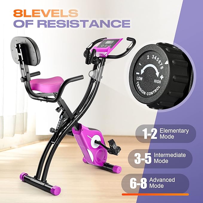 - ✔【3-IN-1 Modes Exercise Bike:】TEHCMOO magnetic upright bike can be changed into upright, semi-recumbent and recumbent 3-in-1 foldable bike. The upright exercise bike helps boosts your heart rate and improve your cardio fitness. While the recumbent indoor exercise bike is more comfortable and natural reclined body position which help reduce body fatigue and eliminate muscle soreness in the upper body. Semi-recumbent workout cycle bike are suitable for people with knee injuries or the elderly.