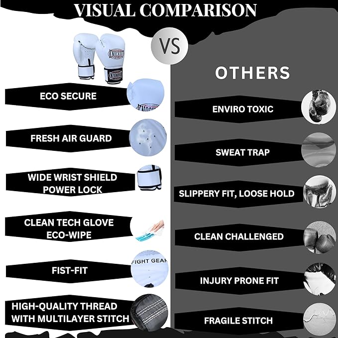 - IMPROVED ALIGNMENT – Extra Thumb support with the palm area helps create an improved alignment between the fist and thumb which allows the users to punch better. These muay thai gloves keeps your hands snug and protected inside. We took strong measures to put enough padding on our boxing training gloves to absorb all the shocks coming from your heavy punches. Easy To Clean With Wet Towel,With Breathable Mesh To Ventilate Sweat From Inner Side, The airing Can Help You Get Rid Of Annoying Odor.