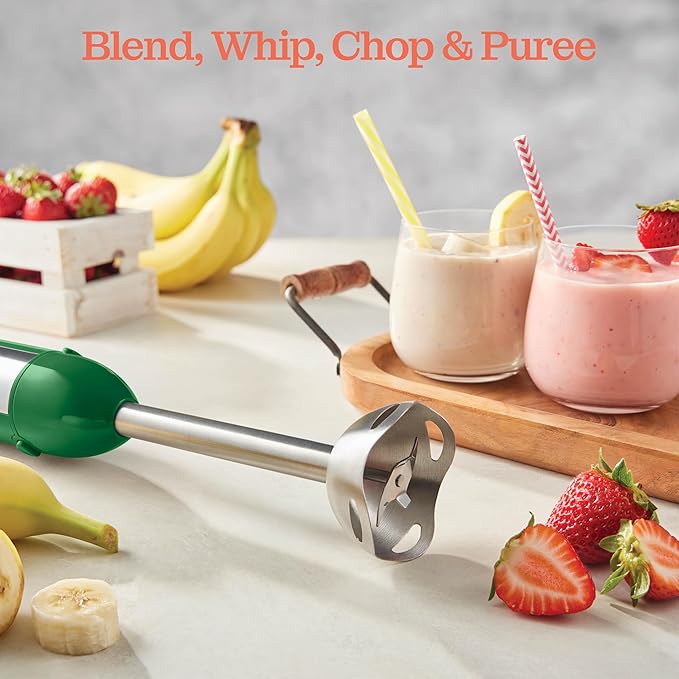 - Powerful Blender - The hand blender has a motor of 500 watts and 4 sharp blades to grind unruly lumps, stubborn clumps, tough meats, and rock-hard fruits for smoothies, soups, milkshakes, and batters.