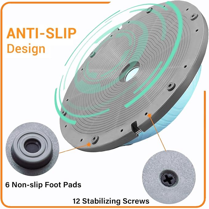- SAFETY & ANTI-SLIP: The half ball balance trainer's surface texture is wavy, with a large granular frosted surface layer to stabilize training without slipping; the base adopts a unique concave design, with a ring-shaped anti-slip texture, and six thickened rubber feet, which provide multiple safeguards to ensure stable movement.