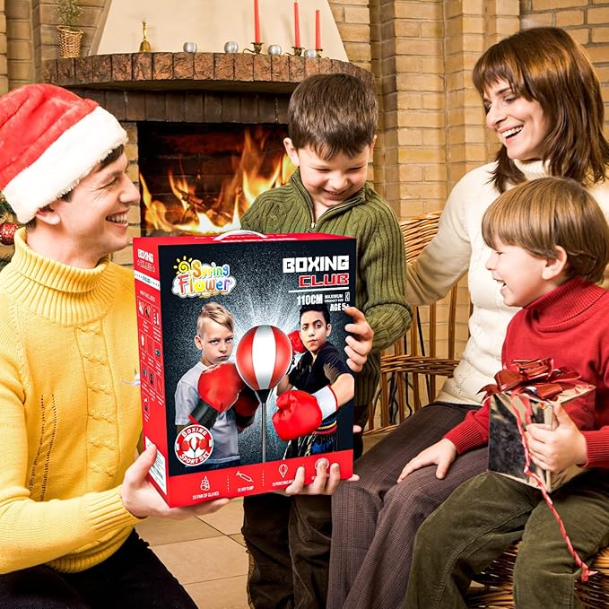 Springflower Big Punching Bag for Kids Included 2 Pack Boxing Gloves, Boxing Toys for Boys, Boxing Bag Sets with Height Adjustable Stand, for Boys & Girls Age 5 6 7 8 9 10 Years Old