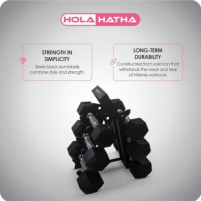 HolaHatha Hexagonal Dumbbell Free Hand Weight Set w/Rack