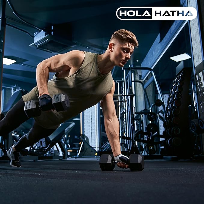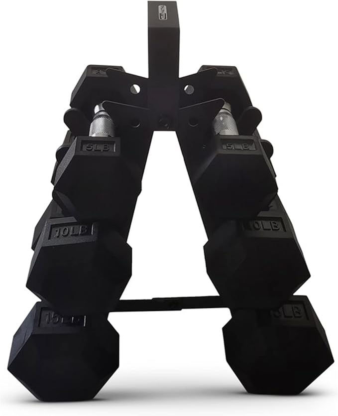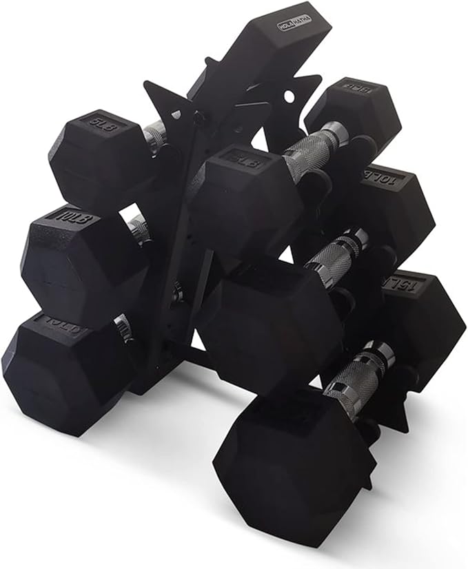 HolaHatha Hexagonal Dumbbell Free Hand Weight Set w/Rack