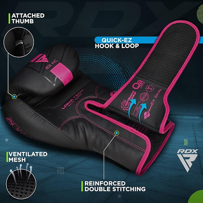 RDX Kids Boxing Gloves Sparring and Muay Thai Maya Hide Leather, Kara Patent Pending Junior Training Mitt for Kickboxing, Punching Bag, Focus Pads, MMA, Thai Pad, Double End Ball Punching Gloves