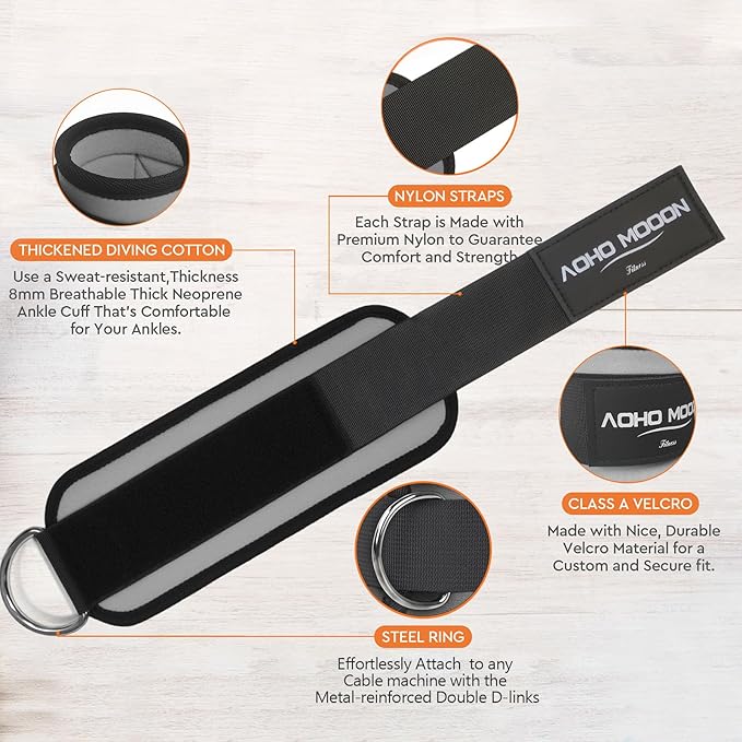 Comfortable Adjustable Padded Ankle Wrist Cuffs Neoprene Padded Straps D-Ring Glute Kickback for Cable Machine, Ideal for Glutes Exercises