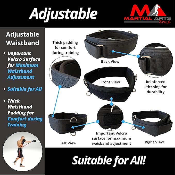 - SUITABLE FOR MOST AND EVERYWHERE - The boxing resistance bands are suitable to most body types because they are designed with an adjustable belt strap (MAX waist size = 39.3 inches for the belt) and adjustable ankle straps. This means the boxing resistance suit will fit you perfectly and will be comfortable to train with. It is also lightweight and compact because it comes with a perfectly fitted carry bag.